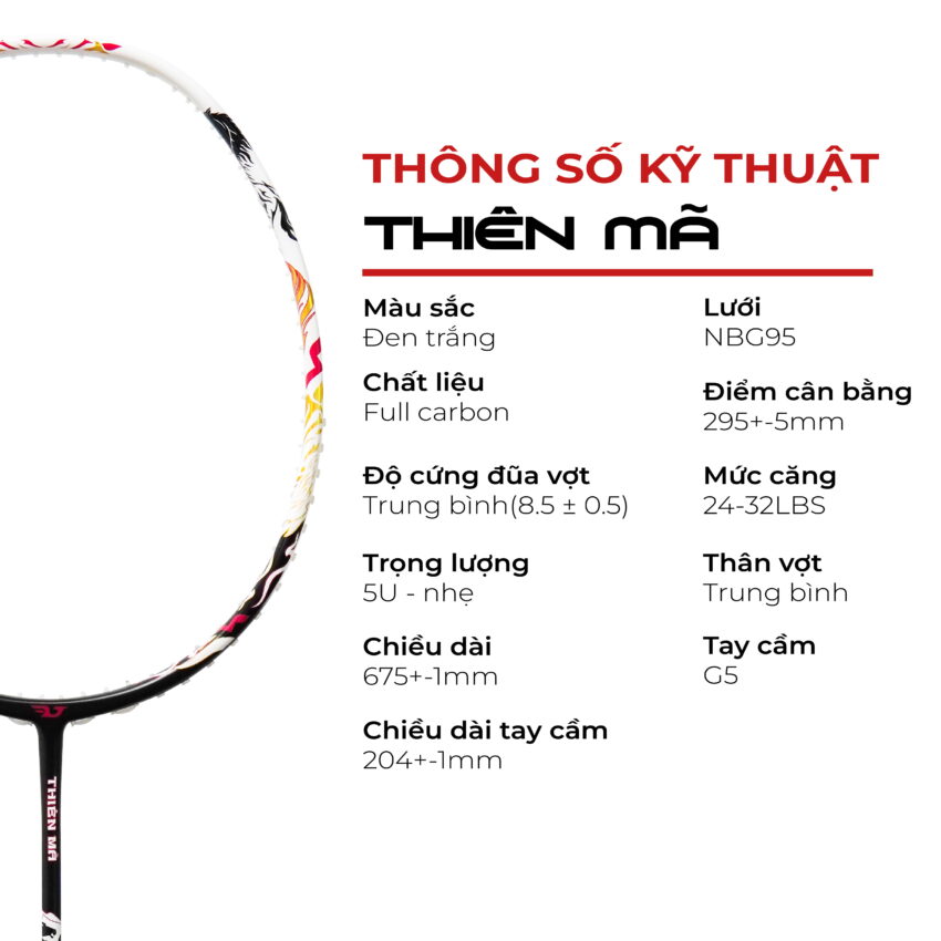 Độ cứng đũa vợt: Trung bình (8.5 ± 0.5) – cân bằng giữa tốc độ và kiểm soát