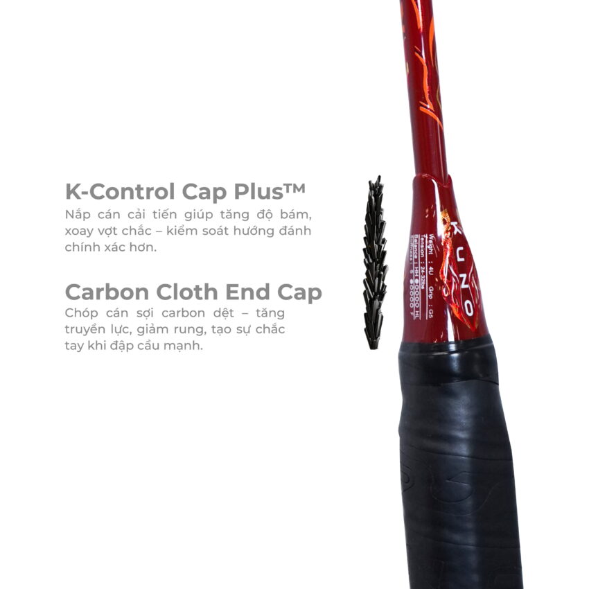 • K-Control Cap Plus™ Nắp cán cải tiến giúp tăng độ bám, xoay vợt chắc – kiểm soát hướng đánh chính xác hơn.