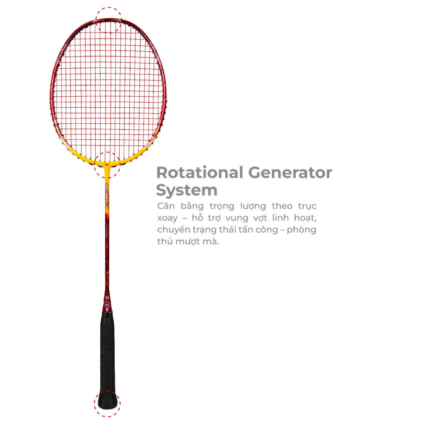 • Rotational Generator System Cân bằng trọng lượng theo trục xoay – hỗ trợ vung vợt linh hoạt, chuyển trạng thái tấn công – phòng thủ mượt mà.