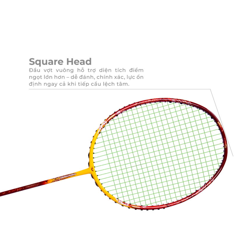 Square Head – Mở rộng điểm ngọt Đầu vợt vuông hỗ trợ diện tích điểm ngọt lớn hơn – dễ đánh, chính xác, lực ổn định ngay cả khi tiếp cầu lệch tâm
