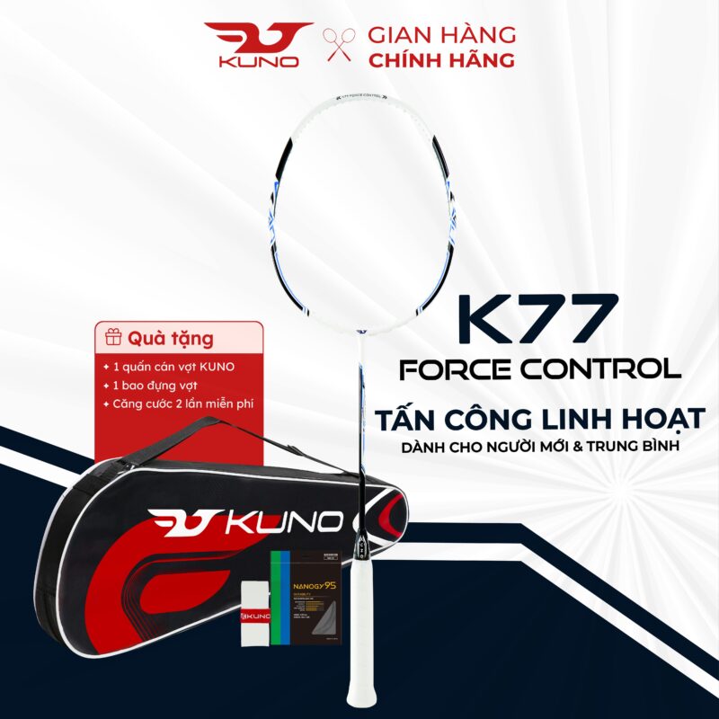 Vợt Cầu Lông KUNO K77 Full Carbon – Thiên Công Mạnh Mẽ, Dễ Điều Khiển, Căng Max 12,7kg