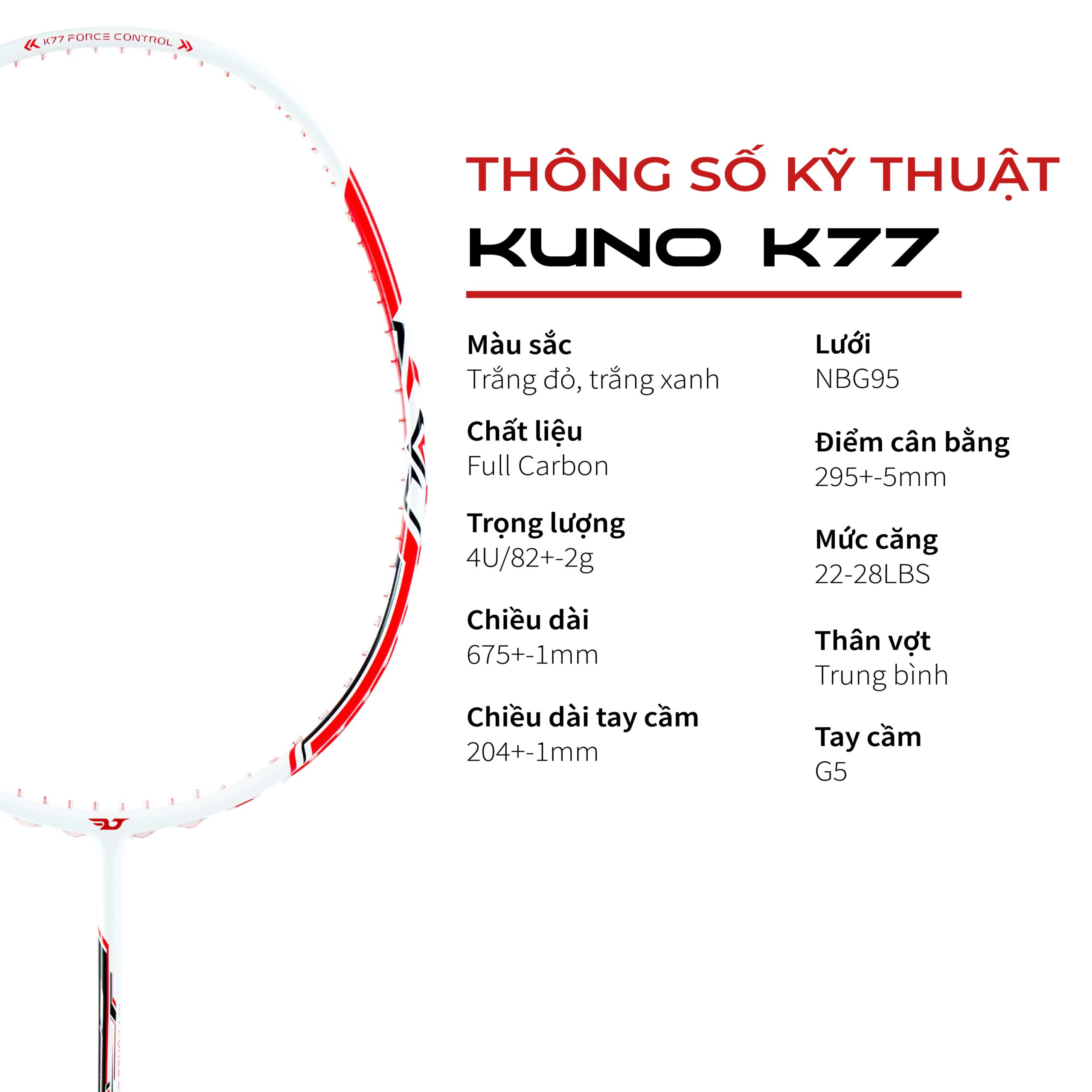 Vợt Cầu Lông KUNO K77 Full Carbon – Thiên Công Mạnh Mẽ, Dễ Điều Khiển, Căng Max 12,7kg