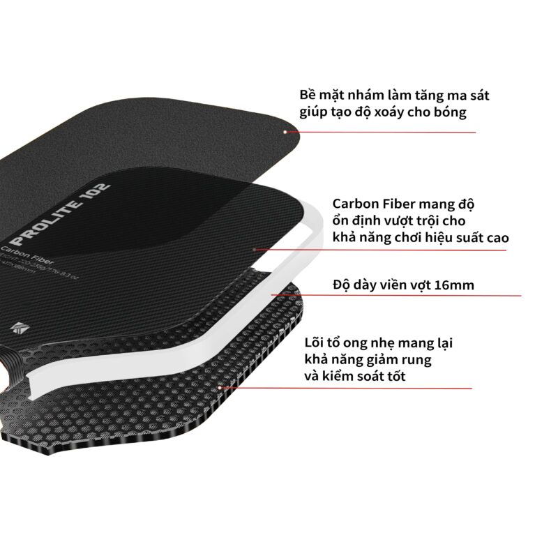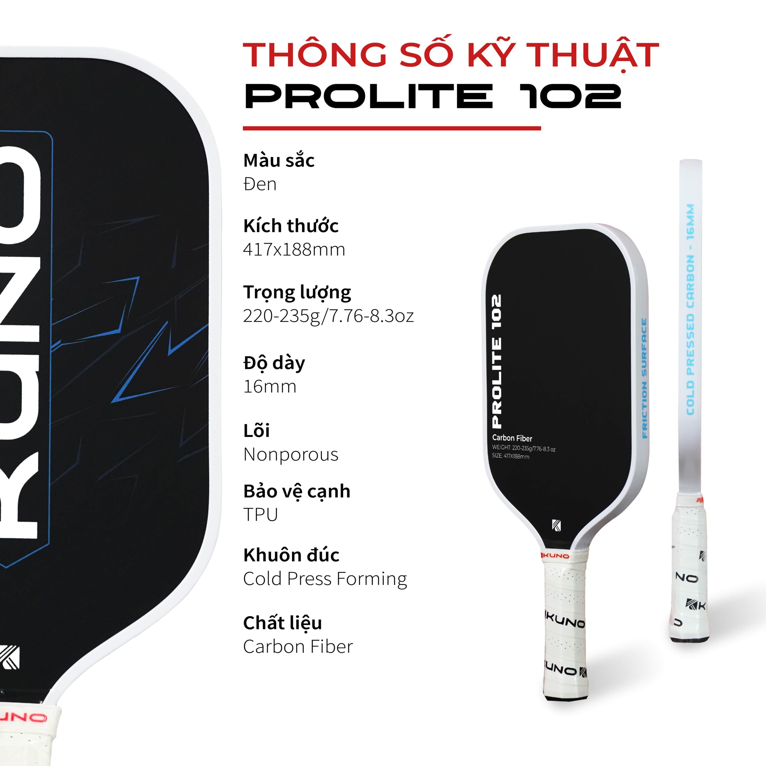 Vợt Pickleball KUNO ProLite 102 Chính Hãng – Lõi Tổ Ong, Carbon Fiber, Dành Cho Lối Đánh Công Thủ Toàn Diện